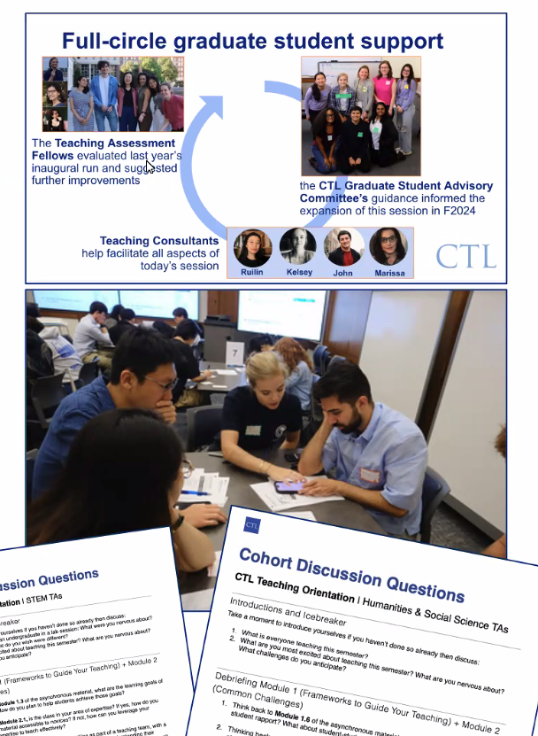 Support the facilitation of Fall Graduate Student Teaching Orientation, supporting students in preparing for Teaching Associate (TA) and Teaching Fellow (Instructor of Record) roles